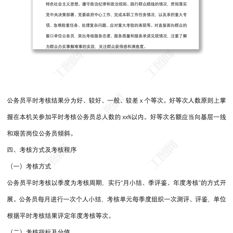 工圖網(wǎng)提供局機(jī)關(guān)公務(wù)員平時(績效)考核實施方案供會員免費下載。更多精彩黨課PPT素材,盡在工圖網(wǎng)。