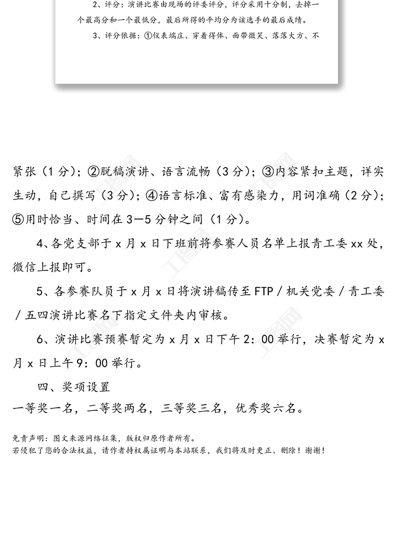 工圖網(wǎng)提供2021年“學(xué)黨史、強(qiáng)信念、跟黨走”五四青年節(jié)演講比賽活動(dòng)方案范文供會(huì)員免費(fèi)下載。更多精彩黨課PPT素材,盡在工圖網(wǎng)。