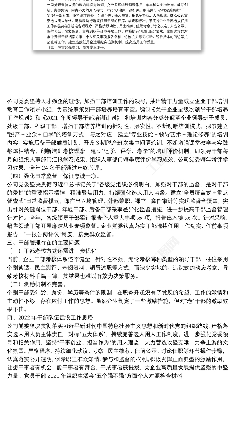 某國有企業(yè)2021年選人用人工作情況及2022年干部隊伍建設(shè)報告