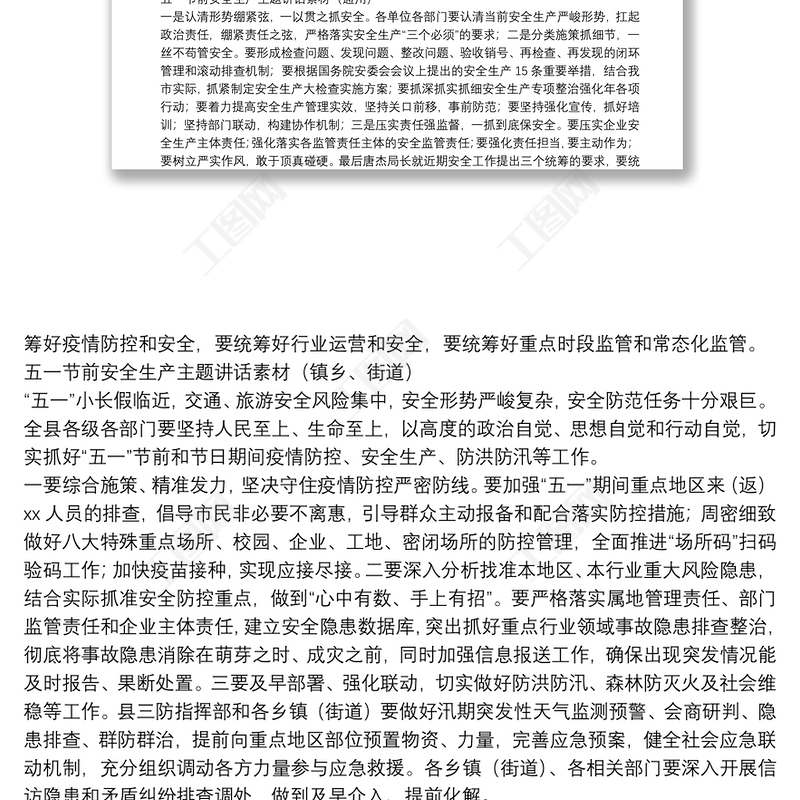 五一節(jié)前安全生產(chǎn)主題講話素材