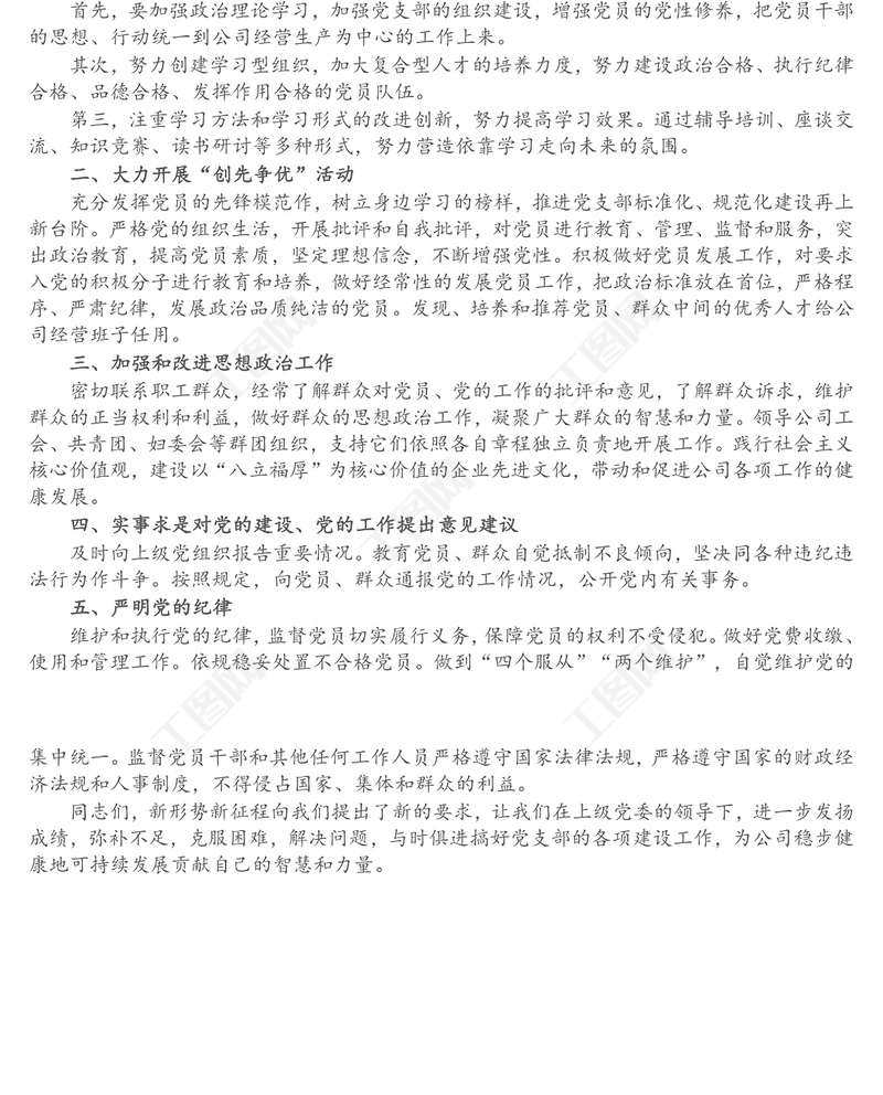 工圖網(wǎng)提供新當(dāng)選的公司黨支部書記表態(tài)發(fā)言供會(huì)員免費(fèi)下載。更多精彩黨課PPT素材,盡在工圖網(wǎng)。