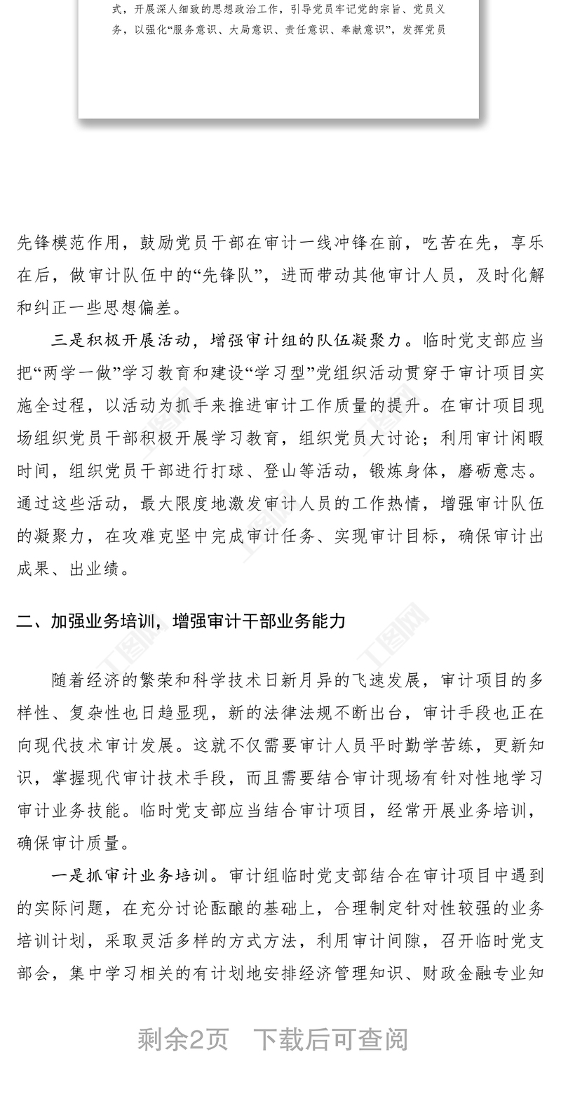 工圖網(wǎng)提供2021完善支部工作法 推進(jìn)黨建與審計(jì)業(yè)務(wù)深度融合交流材料供會(huì)員免費(fèi)下載。更多精彩黨課PPT素材,盡在工圖網(wǎng)。