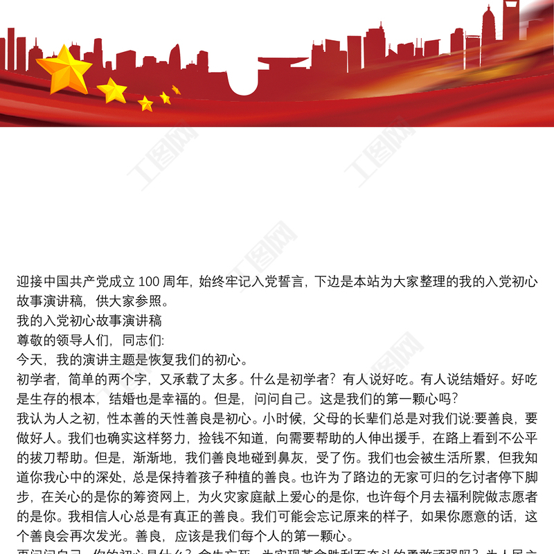 工圖網(wǎng)提供我的入黨初心故事演講稿三篇供會(huì)員免費(fèi)下載。更多精彩黨課PPT素材,盡在工圖網(wǎng)。