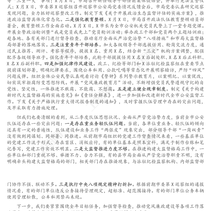 X市公安局政委在二季度隊(duì)伍思想狀況摸排和黨風(fēng)廉政會上的講話,黨風(fēng)廉政,公文范文 Array