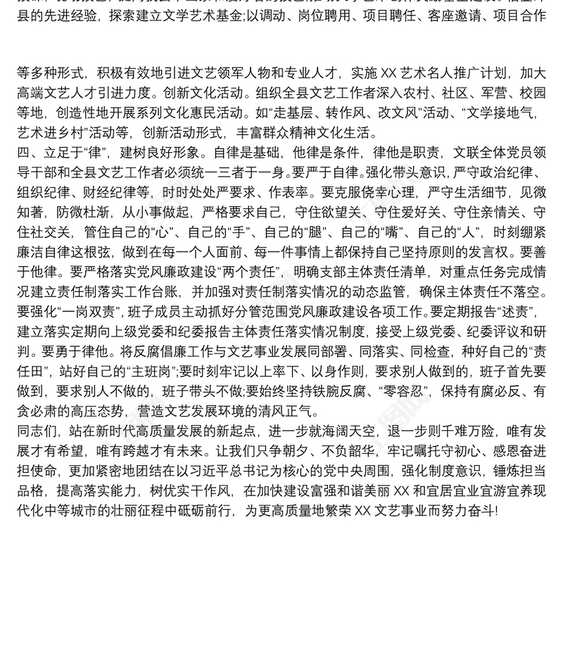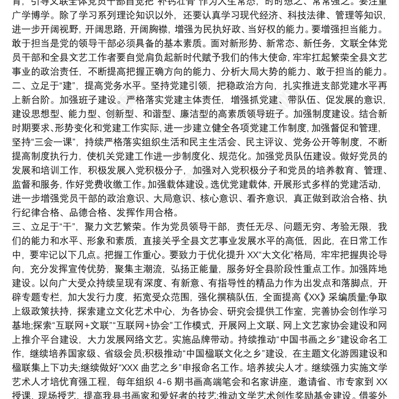 縣文聯(lián)黨支部書記在支部換屆大會上的表態(tài)發(fā)言