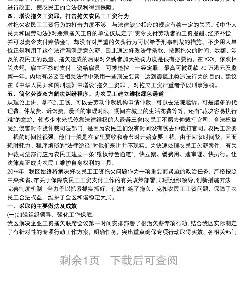 20xx年根治拖欠農(nóng)民工工資工作總結(jié)匯報(bào)3篇