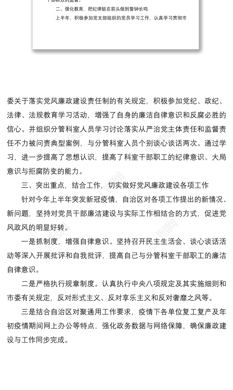 工圖網(wǎng)提供2020年履行黨風(fēng)廉政建設(shè)主體責(zé)任和一崗雙責(zé)情況工作總結(jié)供會(huì)員免費(fèi)下載。更多精彩黨課PPT素材,盡在工圖網(wǎng)。