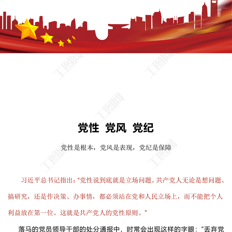 工圖網(wǎng)提供黨性黨風(fēng)黨紀(jì)關(guān)系PPT紅色簡潔黨建知識匯總黨課(講稿)供會員免費下載。更多精彩黨課PPT素材,盡在工圖網(wǎng)。