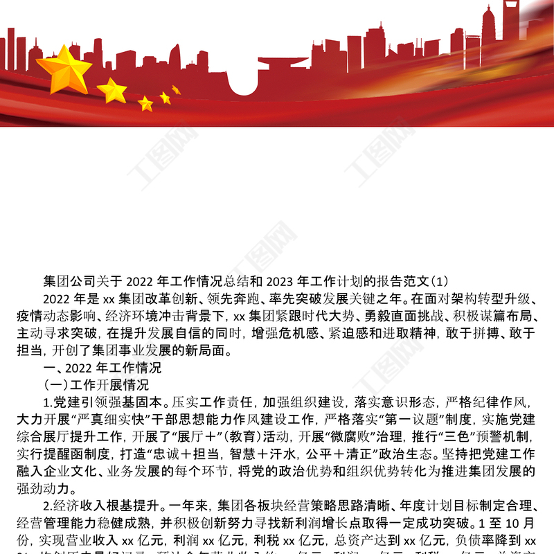 工圖網(wǎng)提供集團公司關(guān)于2022年工作情況總結(jié)和2023年工作計劃的報告3篇 (2)供會員免費下載。更多精彩黨課PPT素材,盡在工圖網(wǎng)。