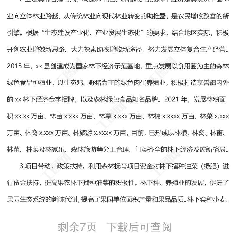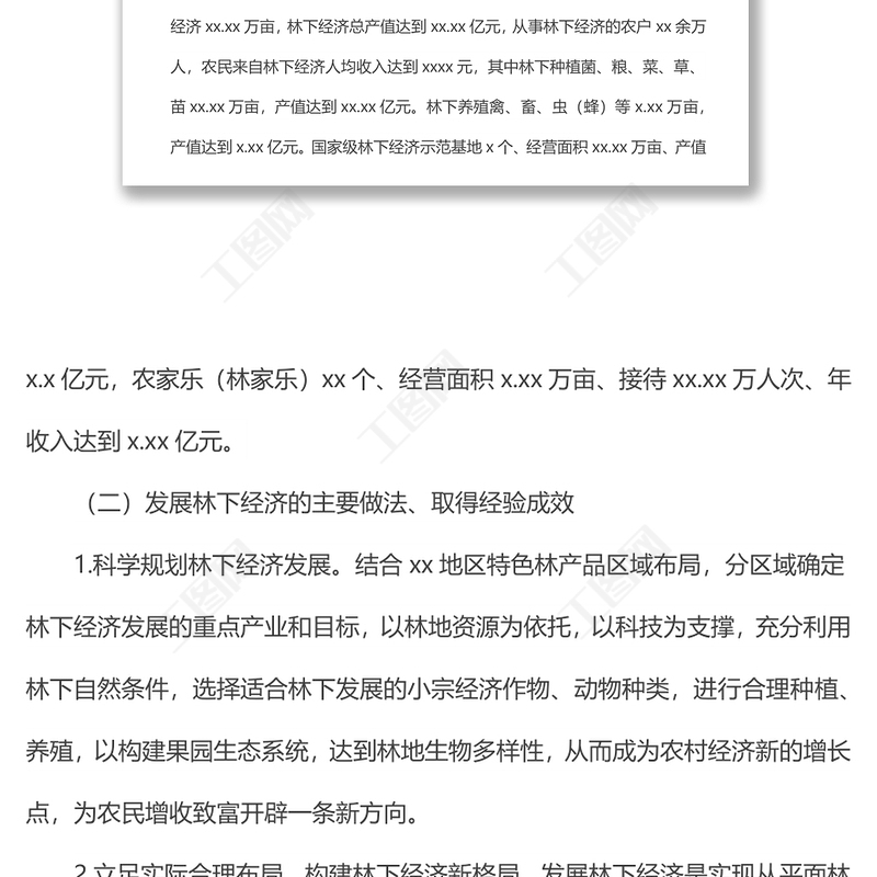 工圖網(wǎng)提供關(guān)于上報(bào)xx地區(qū)林下經(jīng)濟(jì)和森林康養(yǎng)產(chǎn)業(yè)發(fā)展情況的報(bào)告供會(huì)員免費(fèi)下載。更多精彩黨課PPT素材,盡在工圖網(wǎng)。