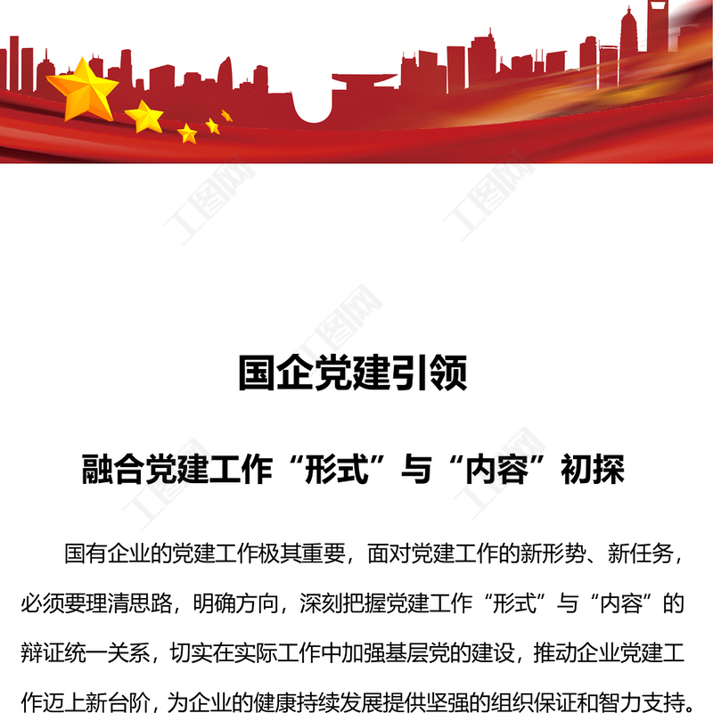 工圖網(wǎng)提供國企黨建引領(lǐng)融合黨建工作形式與內(nèi)容初探專題微黨課供會員免費下載。更多精彩黨課PPT素材,盡在工圖網(wǎng)。