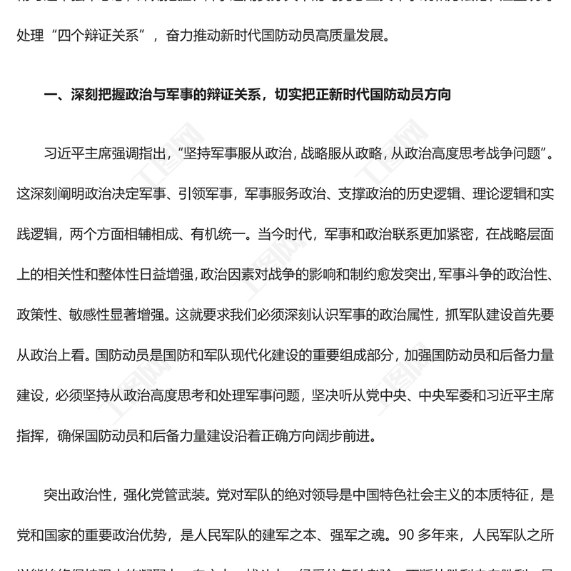 > 黨課講稿 > 2023深刻把握“四個(gè)辯證關(guān)系”ppt紅色精美推動(dòng)新時(shí)代國防動(dòng)員高質(zhì)量發(fā)展廣大軍區(qū)黨員黨組織黨課學(xué)習(xí)課件(講稿).DOCX 【圖片、文字、動(dòng)畫均可編輯】