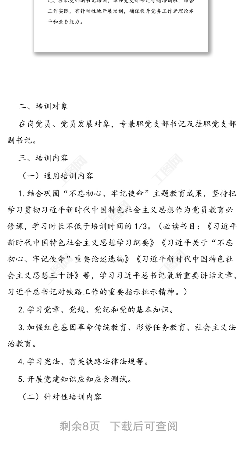 工圖網(wǎng)提供2020年度黨支部書記黨員教育培訓(xùn)方案供會(huì)員免費(fèi)下載。更多精彩黨課PPT素材,盡在工圖網(wǎng)。
