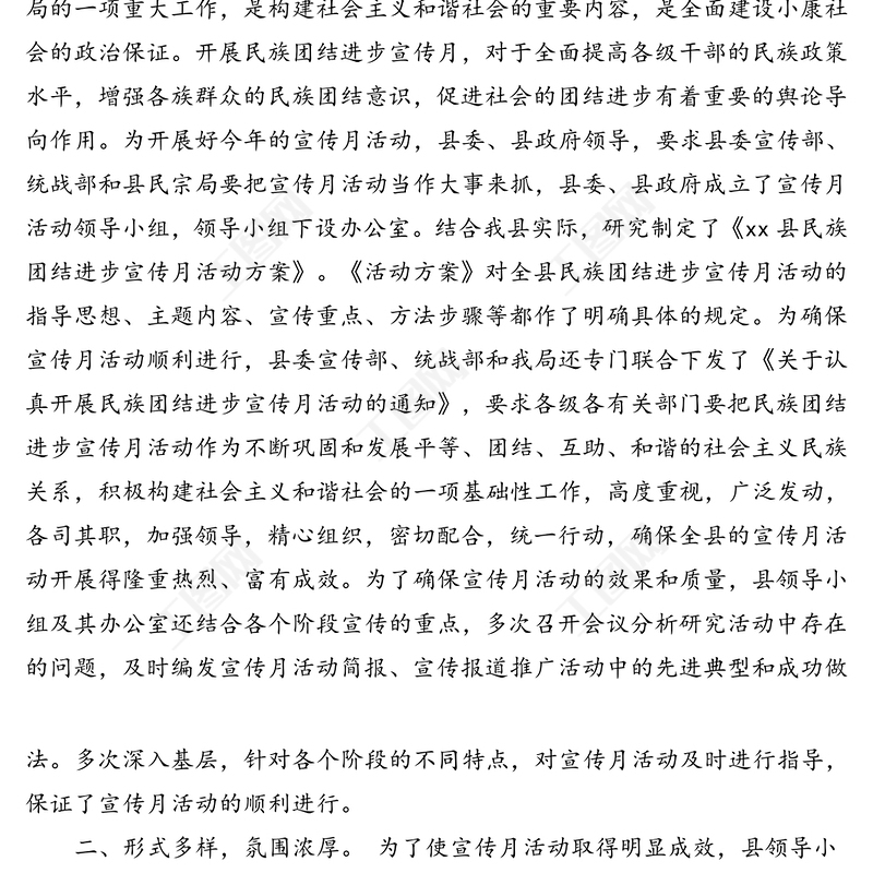 民政局關于開展民族團結進步宣傳月活動的工作總結(區(qū)縣),民族團結,公文范例,領導述職報告,機關公文寫作 Array