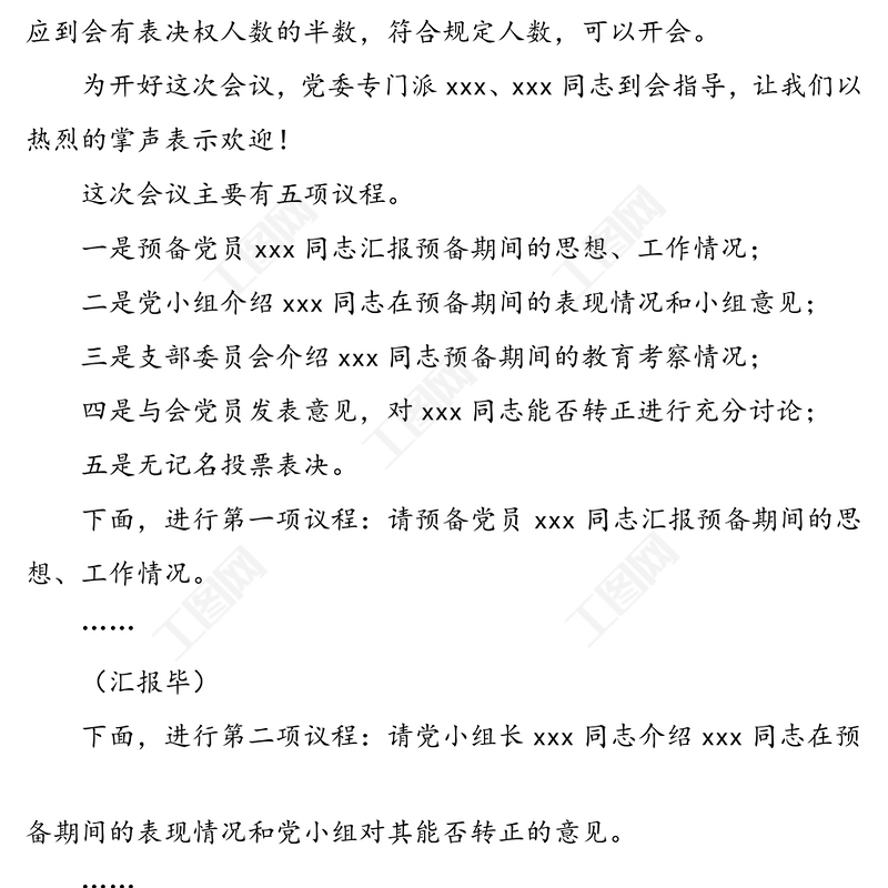 工圖網(wǎng)提供預備黨員轉(zhuǎn)正支部大會主持詞供會員免費下載。更多精彩黨課PPT素材,盡在工圖網(wǎng)。