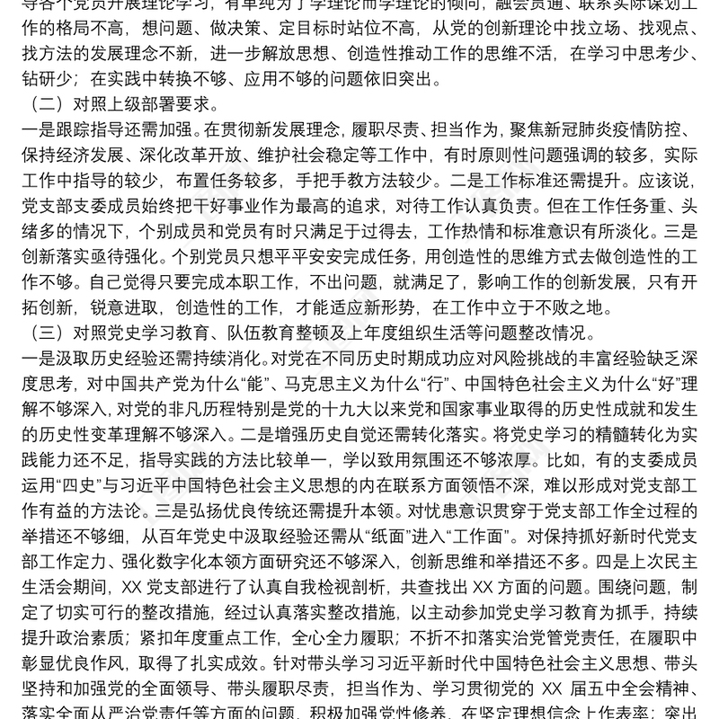 公司基層黨組織2021年度組織生活會個人對照檢查材料包含