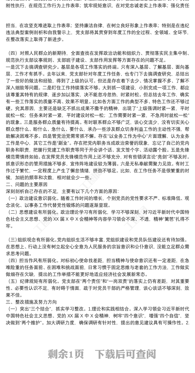 2021年政法隊伍教育整頓專題組織生活會黨支部班子集體對照檢查材料包含