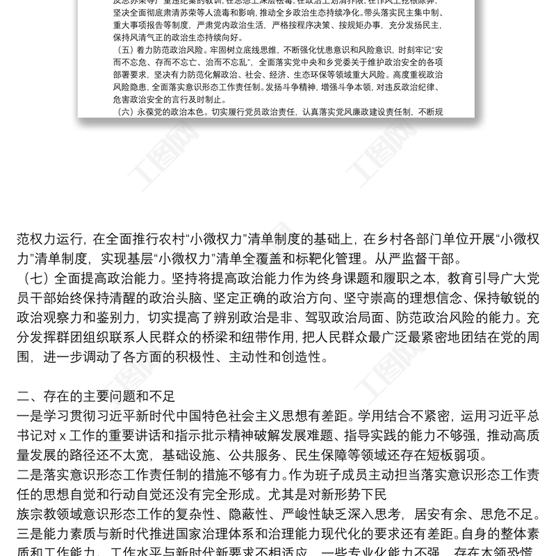 工圖網(wǎng)提供領(lǐng)導(dǎo)班子領(lǐng)導(dǎo)干部政治素質(zhì)考察自評(píng)報(bào)告供會(huì)員免費(fèi)下載。更多精彩黨課PPT素材,盡在工圖網(wǎng)。