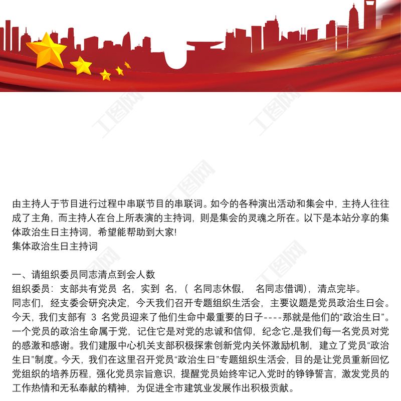工圖網(wǎng)提供集體政治生日主持詞供會(huì)員免費(fèi)下載。更多精彩黨課PPT素材,盡在工圖網(wǎng)。