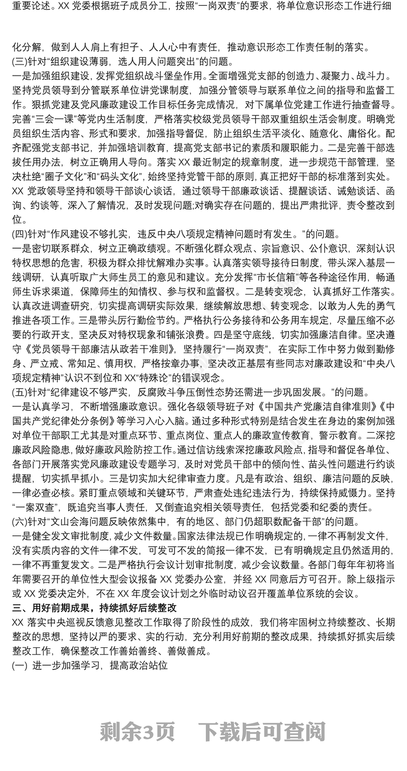 落實巡視巡察整改情況反饋報告材料大全 Array