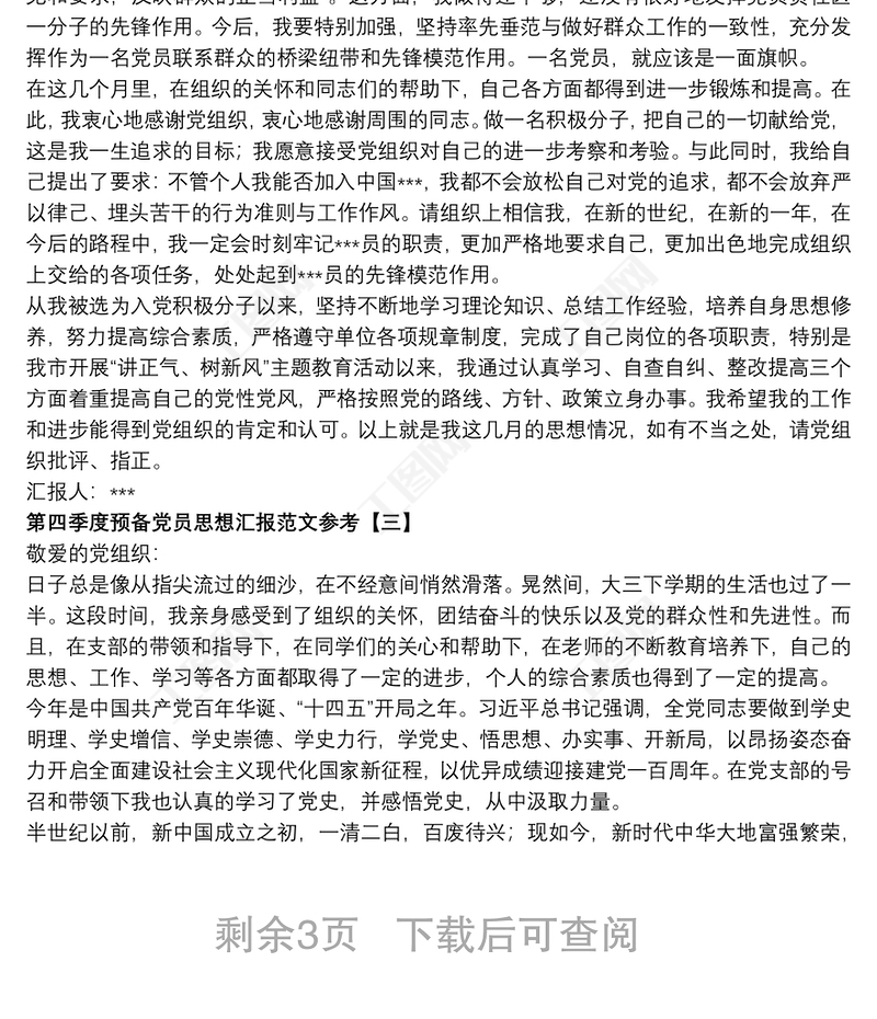 第四季度預(yù)備黨員思想?yún)R報(bào)范文參考 Array