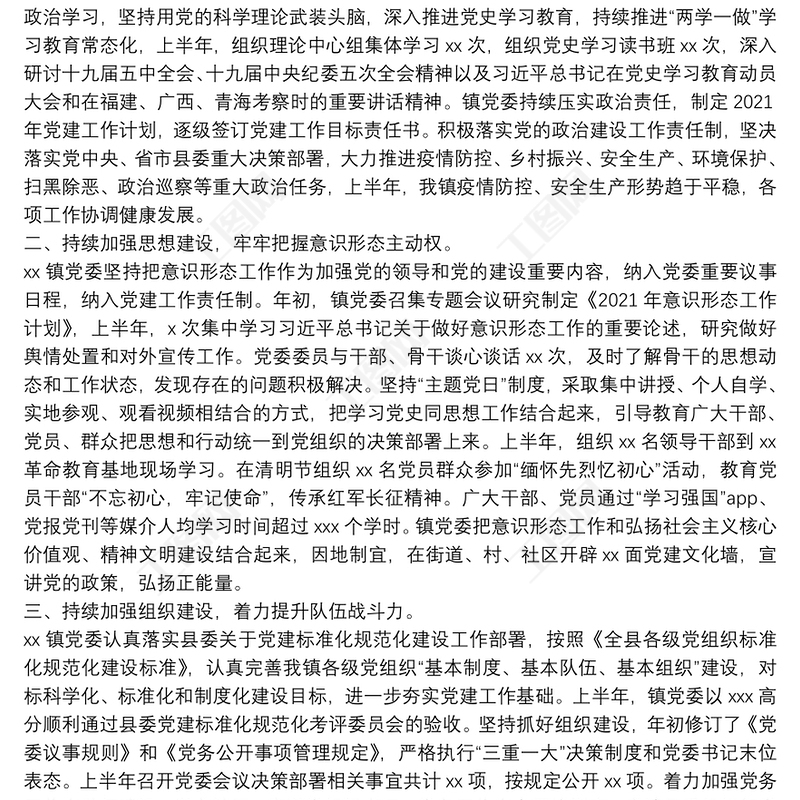工圖網(wǎng)提供某鄉(xiāng)鎮(zhèn)黨委2021年上半年黨建及黨風(fēng)廉政建設(shè)工作總結(jié)報告供會員免費下載。更多精彩黨課PPT素材,盡在工圖網(wǎng)。