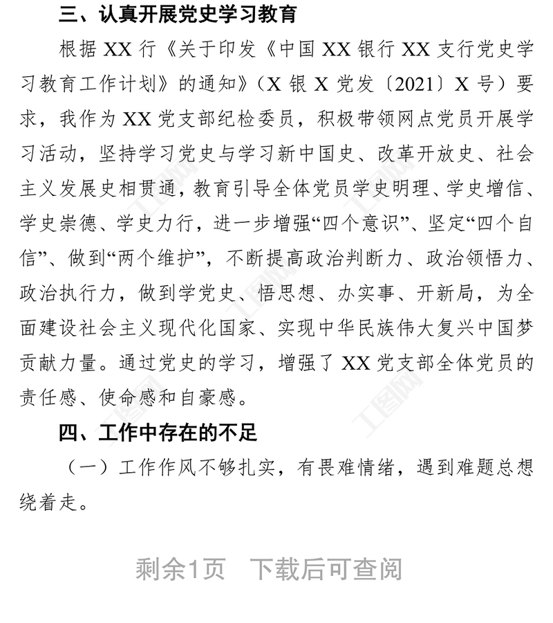 工圖網(wǎng)提供某銀行黨支部紀檢委員2021年上半年履職報告供會員免費下載。更多精彩黨課PPT素材,盡在工圖網(wǎng)。