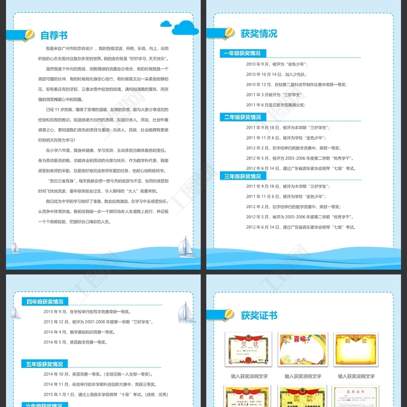 小升初簡歷幼升小學生簡歷兒童簡歷模版12包含