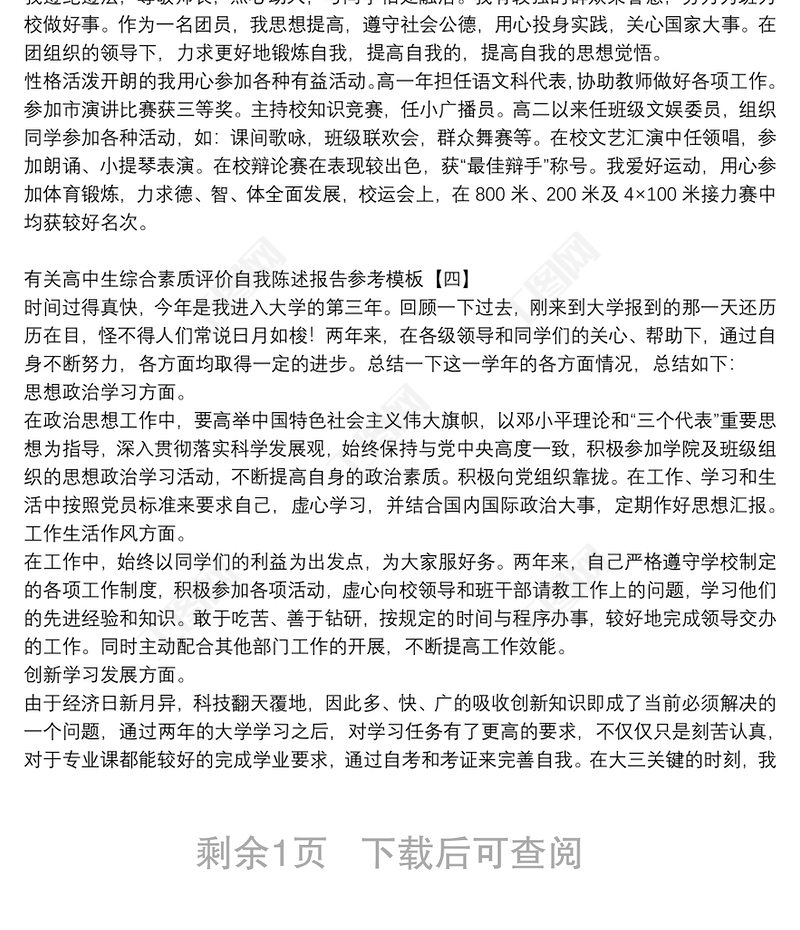 有關(guān)高中生綜合素質(zhì)評價自我陳述報告參考模板