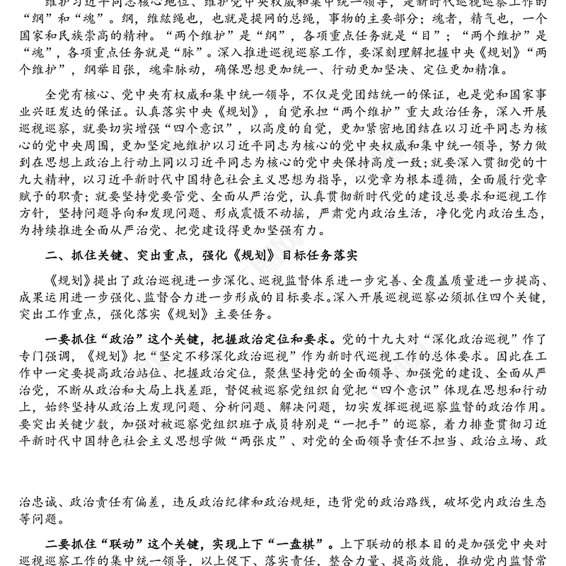 交流發(fā)言:堅定兩個維護 抓住四個關(guān)鍵 推進政治巡視巡察向縱深發(fā)展(巡察工作領(lǐng)導(dǎo)小組組長),重要講話,公文范文 Array
