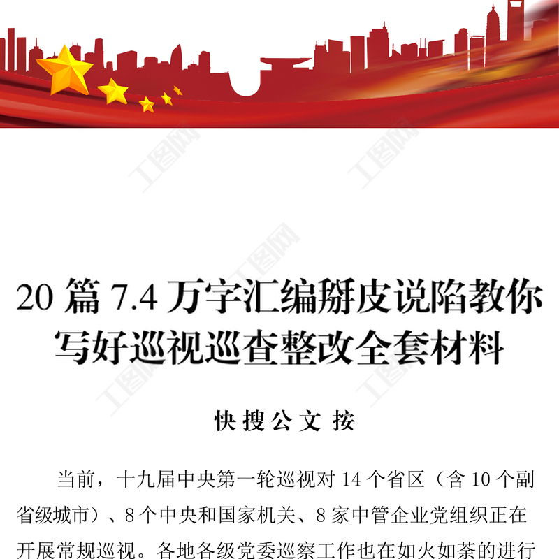工圖網(wǎng)提供20篇7.4萬字匯編掰皮說陷教你寫好巡視巡查整改全套材料供會(huì)員免費(fèi)下載。更多精彩黨課PPT素材,盡在工圖網(wǎng)。