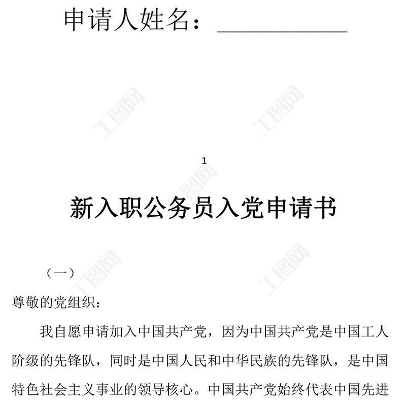 工圖網(wǎng)提供2021年新入職公務(wù)員入黨申請書供會員免費下載。更多精彩黨課PPT素材,盡在工圖網(wǎng)。