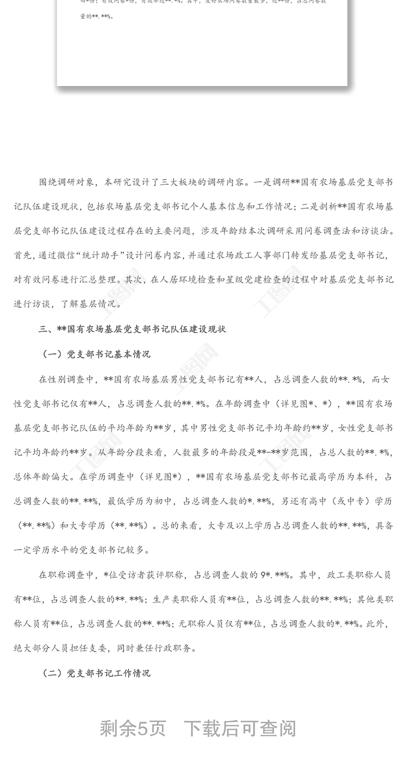 工圖網(wǎng)提供關(guān)于對基層黨支部書記隊伍建設(shè)現(xiàn)狀調(diào)研與對策分析(集團公司)供會員免費下載。更多精彩黨課PPT素材,盡在工圖網(wǎng)。