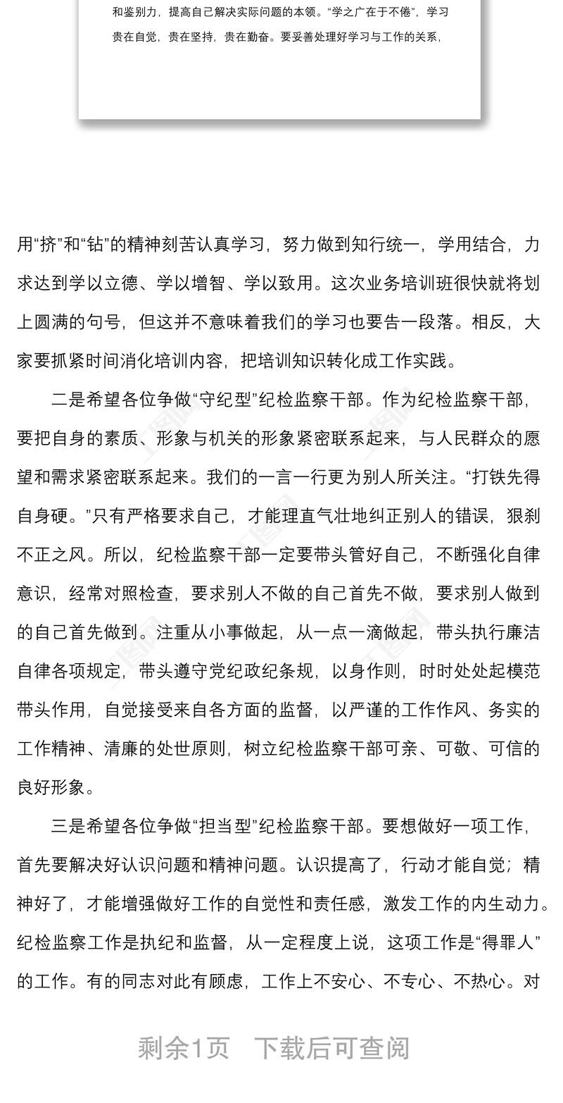 在紀檢監(jiān)察系統干部讀書班閉幕式上的講話范文紀委監(jiān)委學習培訓班結業(yè)儀式