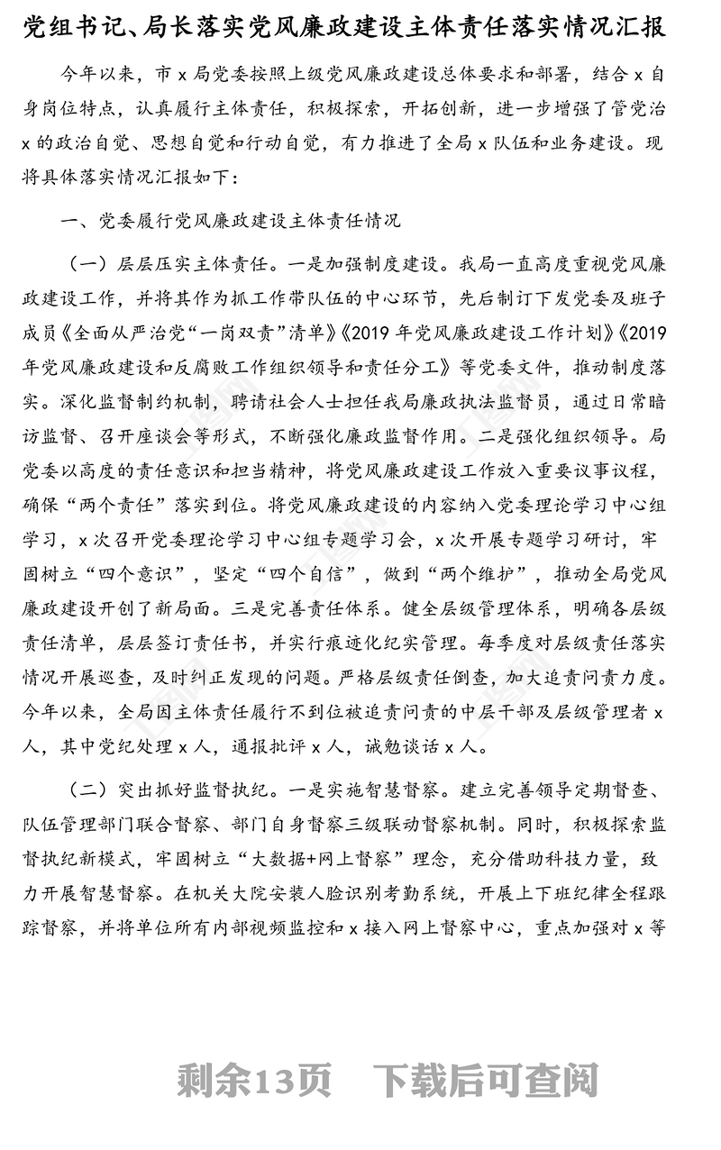 工圖網(wǎng)提供落實(shí)全面從嚴(yán)治黨和黨風(fēng)廉政建設(shè)“一崗雙責(zé)”情況匯報(bào)匯編(4篇)(村總支書記、村主任、常務(wù)副市長、黨組書記、市婦聯(lián)主席)供會員免費(fèi)下載。更多精彩黨課PPT素材,盡在工圖網(wǎng)。