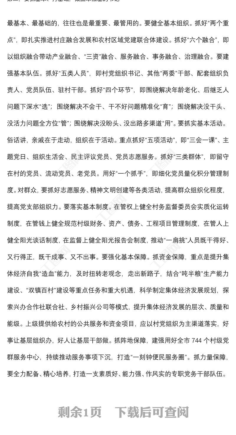 2022駐村第一書(shū)記鄉(xiāng)村振興黨課講稿領(lǐng)導(dǎo)在2022年機(jī)關(guān)黨組織書(shū)記抓基層黨建述職評(píng)議會(huì)上的點(diǎn)評(píng)講話2021黨組織書(shū)記在黨史學(xué)習(xí)教育專(zhuān)題民主生活會(huì)上的總結(jié)發(fā)言2022年黨組織書(shū)記述責(zé)述廉報(bào)告2022鄉(xiāng)村振興先進(jìn)個(gè)人主要事跡范文2022黨組織書(shū)記抓基層黨建工作問(wèn)題整改方案2022年黨組織書(shū)記履行全面從嚴(yán)治黨責(zé)任述職報(bào)告2022村級(jí)鄉(xiāng)村振興示范點(diǎn)經(jīng)驗(yàn)典型材料2022鄉(xiāng)鎮(zhèn)街道網(wǎng)絡(luò)安全管理制度2022年非公黨組織書(shū)記述職報(bào)告2021社區(qū)黨組織書(shū)記黨史學(xué)習(xí)教育專(zhuān)題黨課講稿2022年度基層黨組織書(shū)記開(kāi)展述職評(píng)議考核工作情況報(bào)告2023鄉(xiāng)鎮(zhèn)街道廉政談心談話記錄2022基層黨組織書(shū)記集體廉潔談話提綱2023村支部書(shū)記匯報(bào)鄉(xiāng)村振興2023鄉(xiāng)鎮(zhèn)街道從嚴(yán)治黨工作計(jì)劃