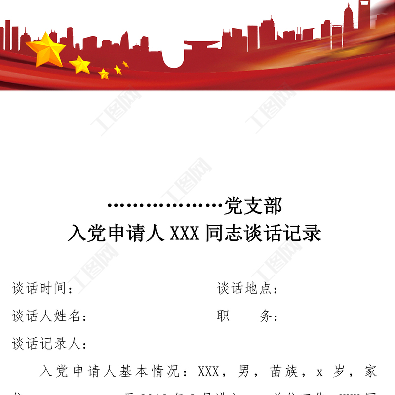 工圖網(wǎng)提供2021年入黨申請人談話記錄供會員免費下載。更多精彩黨課PPT素材,盡在工圖網(wǎng)。