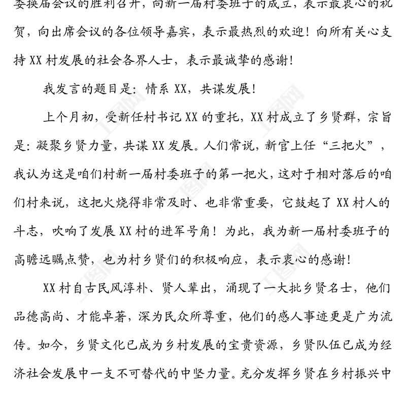 鄉(xiāng)賢代表在XX村村委換屆會議上的講話包含