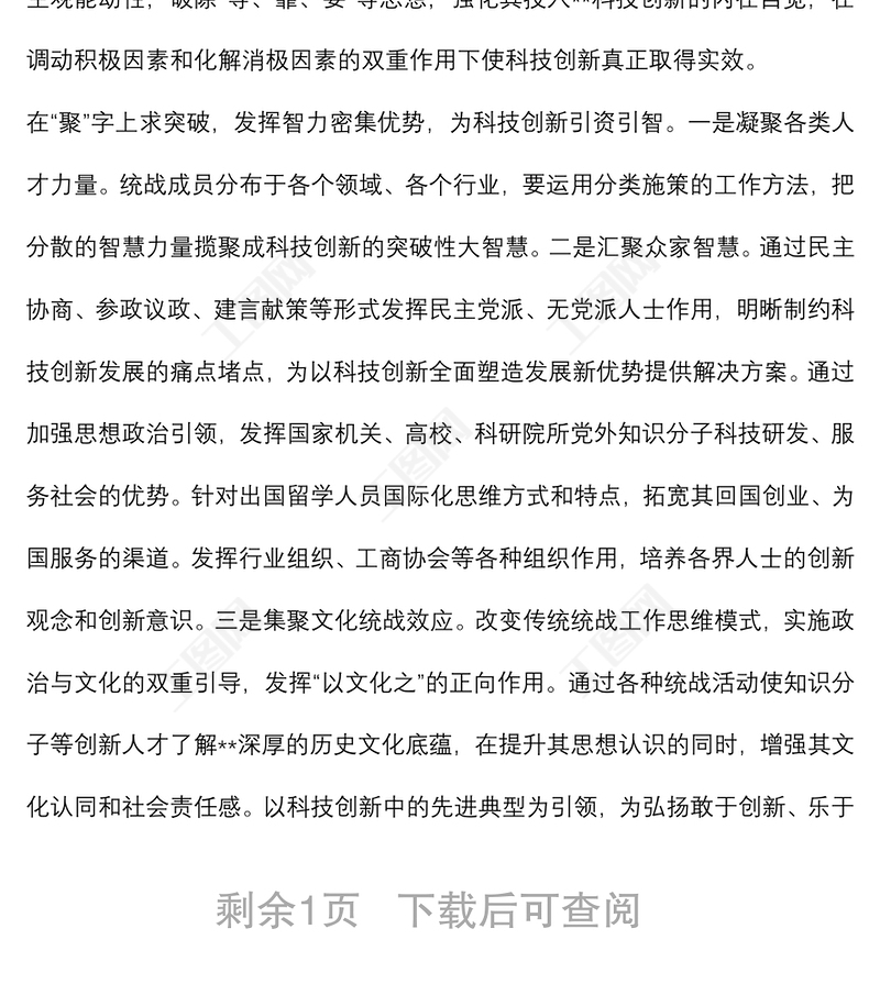 > 公文范文 > 統(tǒng)戰(zhàn)工作交流發(fā)言:發(fā)揮統(tǒng)一戰(zhàn)線優(yōu)勢(shì)助力xx科技創(chuàng)新.DOCX 【圖片、文字、動(dòng)畫均可編輯】