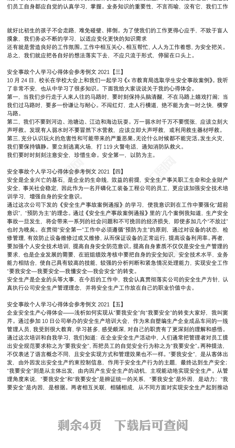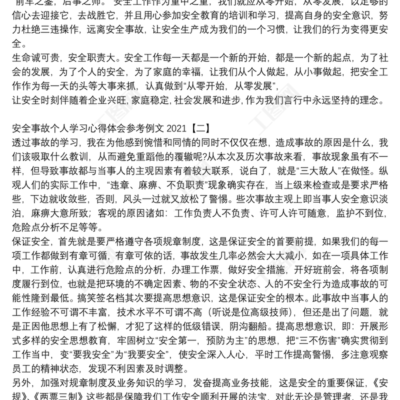 安全事故個(gè)人學(xué)習(xí)心得體會(huì)參考例文2021