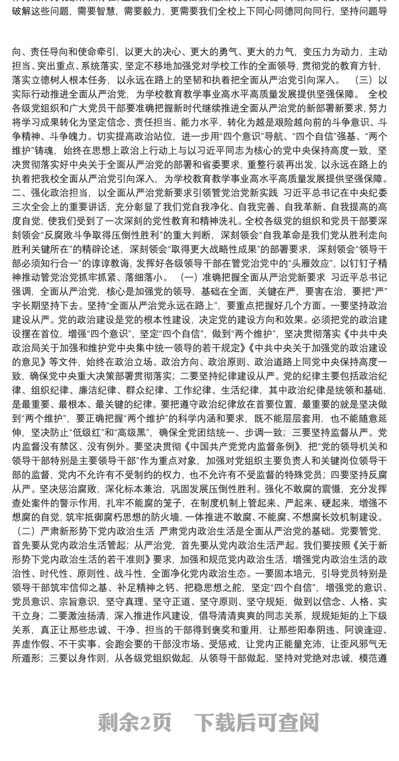 工圖網(wǎng)提供黨委書記在學校全面從嚴治黨工作會議上的講話(高校)供會員免費下載。更多精彩黨課PPT素材,盡在工圖網(wǎng)。