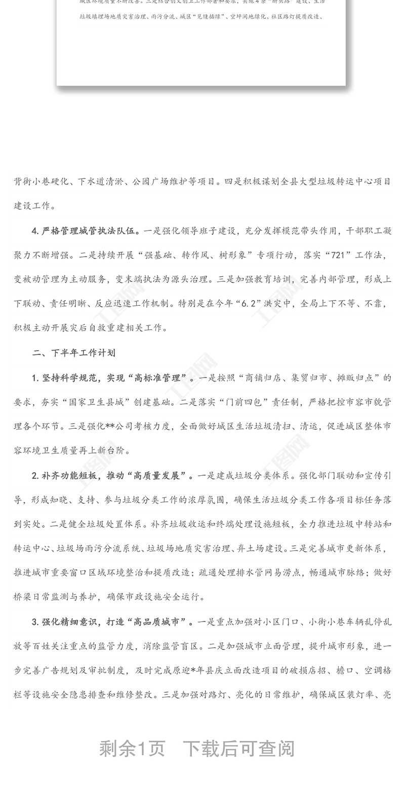 工圖網(wǎng)提供縣城市管理和綜合執(zhí)法局2022年上半年工作總結(jié)及下半年工作計(jì)劃供會(huì)員免費(fèi)下載。更多精彩黨課PPT素材,盡在工圖網(wǎng)。