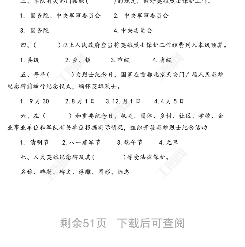工圖網(wǎng)提供退役軍人事務(wù)系統(tǒng)行政執(zhí)法人員專門法律知識應(yīng)知應(yīng)會題庫含答案匯編(12套)供會員免費下載。更多精彩黨課PPT素材,盡在工圖網(wǎng)。