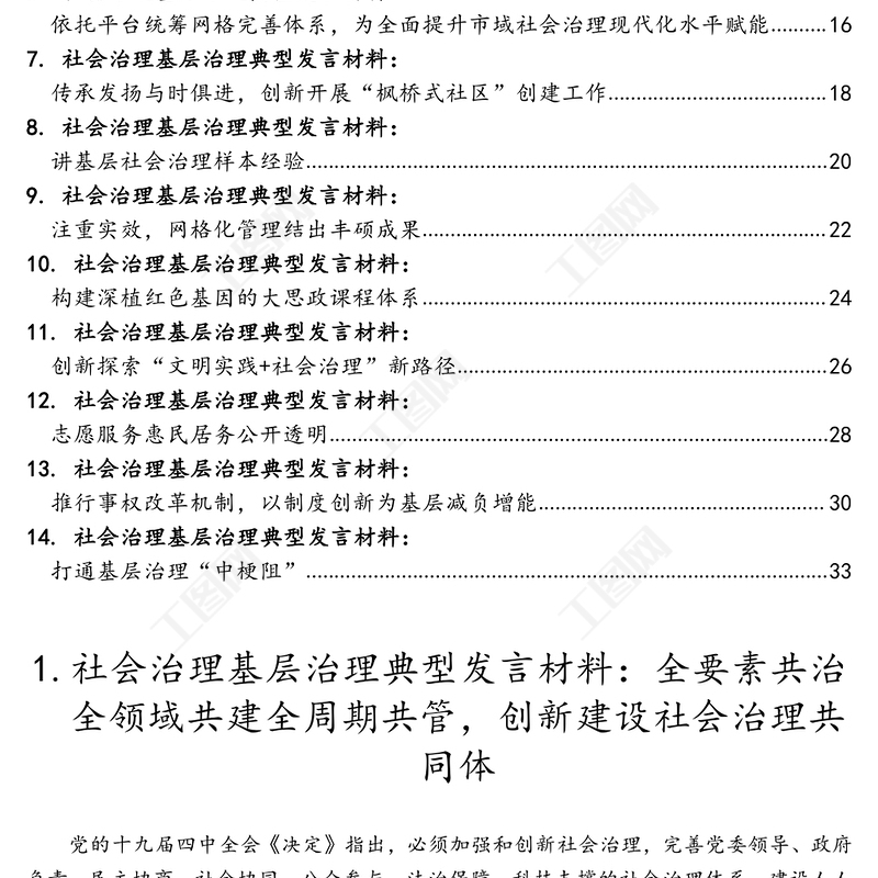 工圖網(wǎng)提供社會(huì)治理基層治理典型發(fā)言材料匯編(14篇)供會(huì)員免費(fèi)下載。更多精彩黨課PPT素材,盡在工圖網(wǎng)。