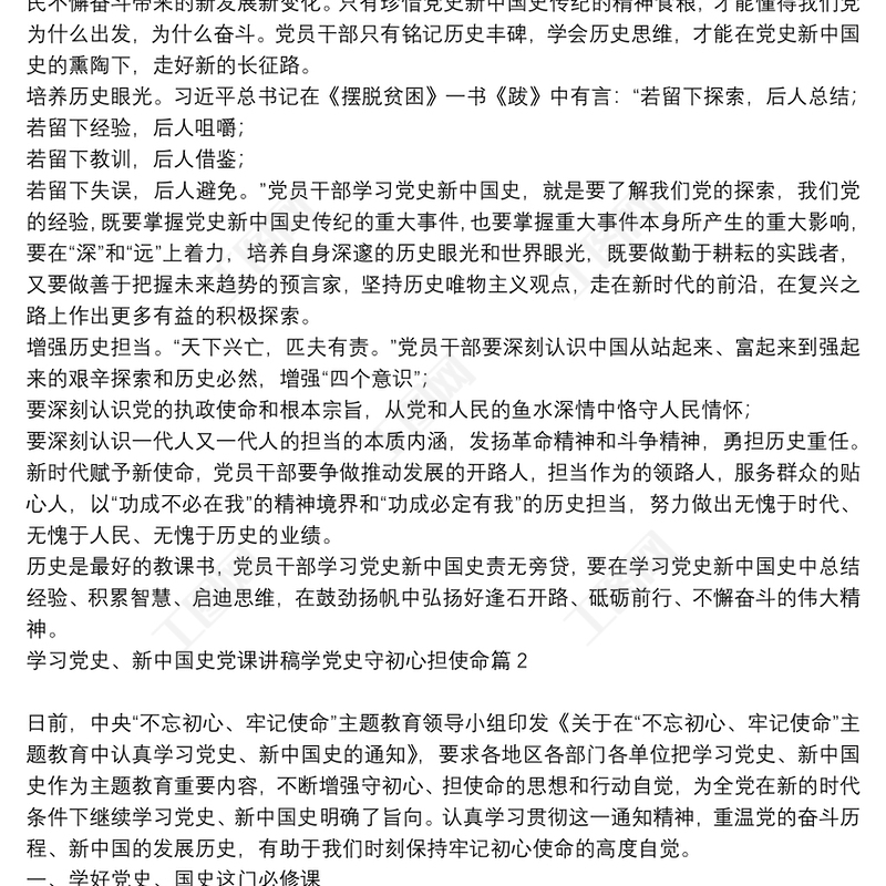 學(xué)習(xí)黨史、新中國史黨課講稿(學(xué)黨史守初心擔(dān)使命)【6篇】包含