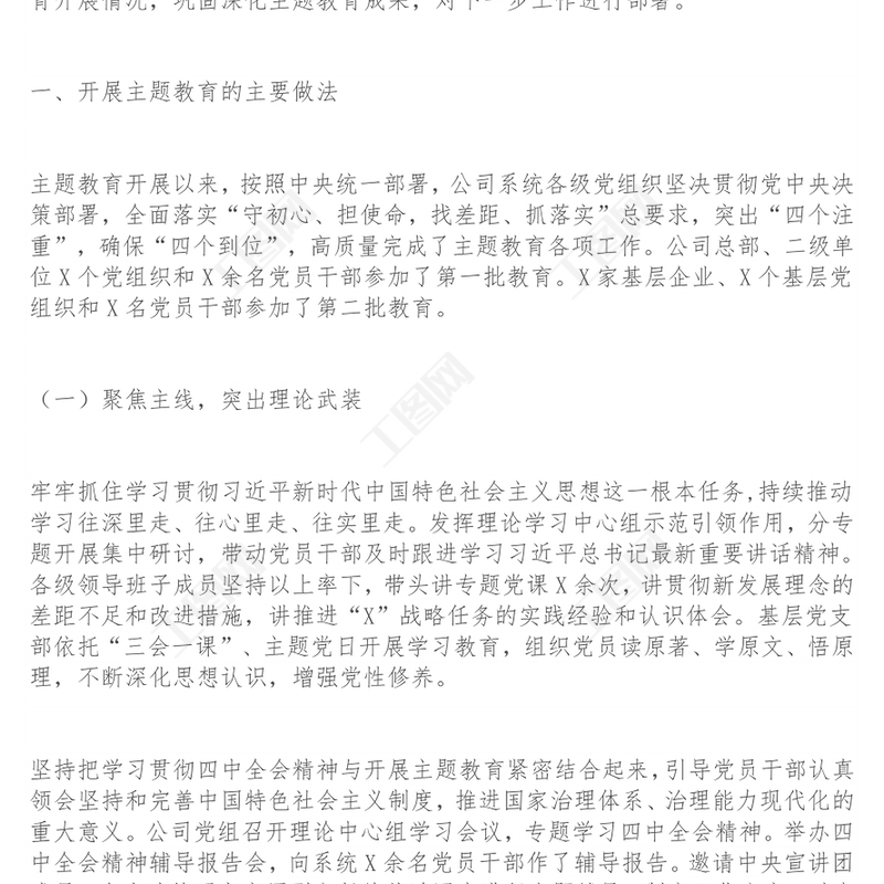 工圖網(wǎng)提供在公司“不忘初心牢記使命”主題教育總結(jié)大會上的講話主題教育講話供會員免費(fèi)下載。更多精彩黨課PPT素材,盡在工圖網(wǎng)。
