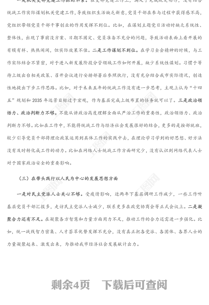 工圖網(wǎng)提供統(tǒng)戰(zhàn)部領(lǐng)導(dǎo)班子2021年度黨史學(xué)習(xí)教育五個(gè)帶頭專題民主生活會(huì)對(duì)照檢查材料供會(huì)員免費(fèi)下載。更多精彩黨課PPT素材,盡在工圖網(wǎng)。