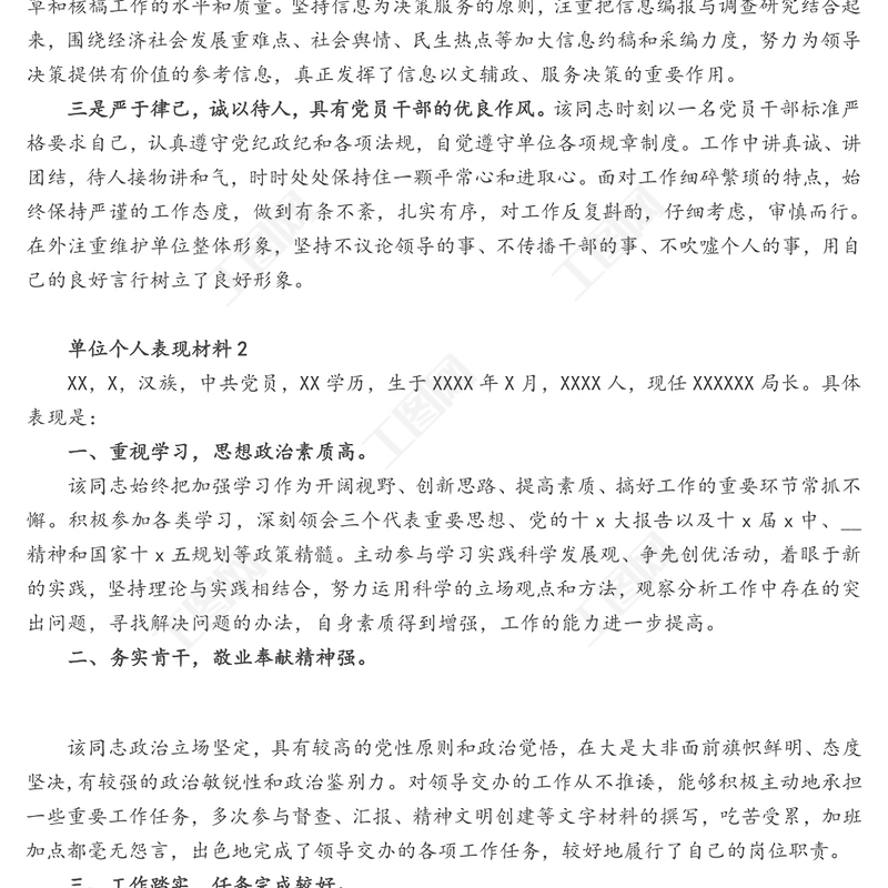 單位個(gè)人表現(xiàn)材料3篇,表現(xiàn)材料,公文范文 Array