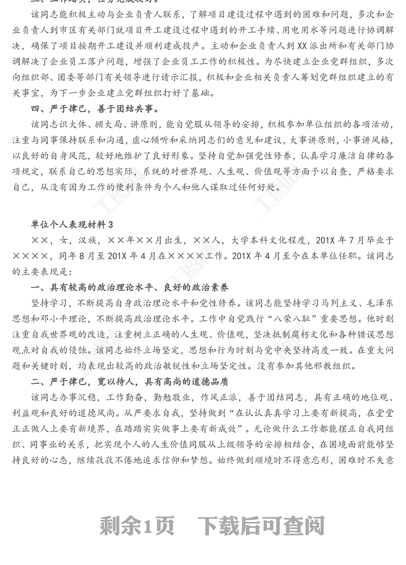 工圖網(wǎng)提供單位個(gè)人表現(xiàn)材料3篇供會(huì)員免費(fèi)下載。更多精彩黨課PPT素材,盡在工圖網(wǎng)。