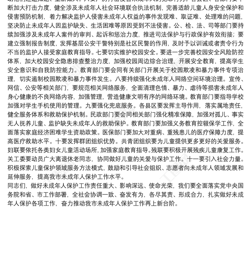 > 領(lǐng)導(dǎo)講話(huà) > 在市未成年人保護(hù)工作領(lǐng)導(dǎo)小組第一次全體會(huì)議上的講話(huà).DOCX 【圖片、文字、動(dòng)畫(huà)均可編輯】